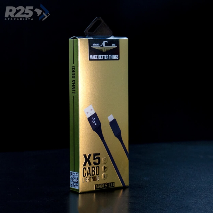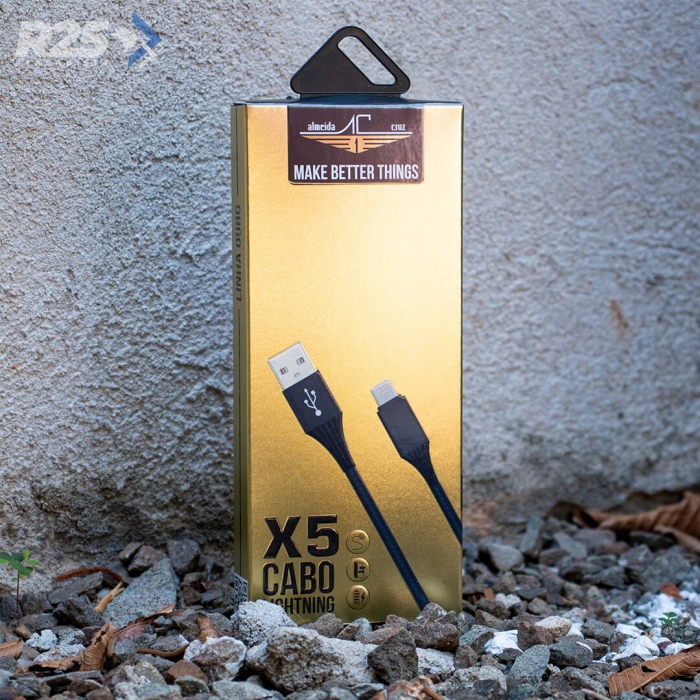 O Cabo Lightning X5 da Almeida Cruz é um cabo super resistente, capaz de aguentar os abusos do dia-a-dia, sem deixar de lado a velocidade.