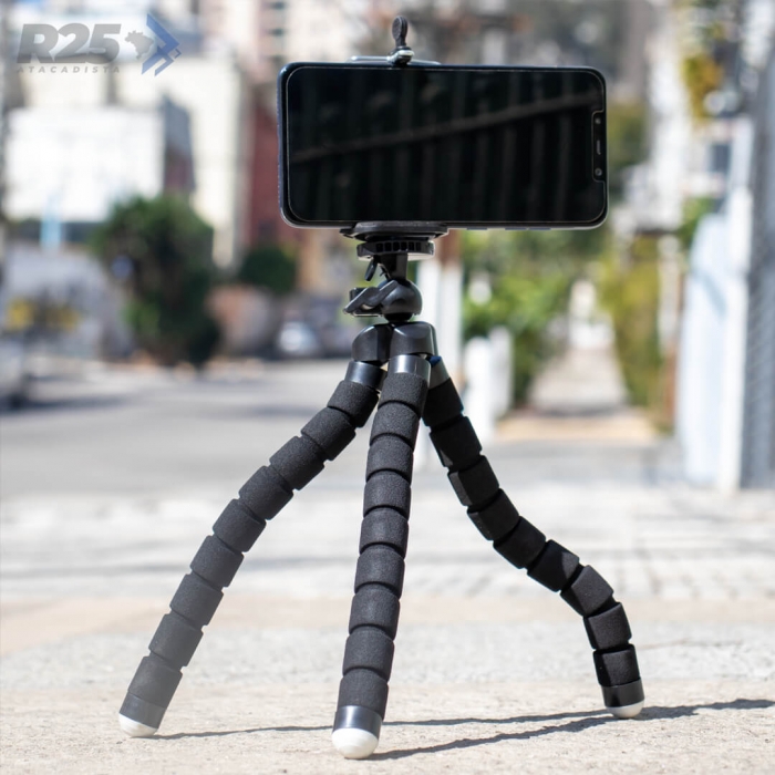 O Suporte Tripé Flexível Sponge serve pra todos os momentos! Se fechar, vira monopod, se abrir, vira tripé.